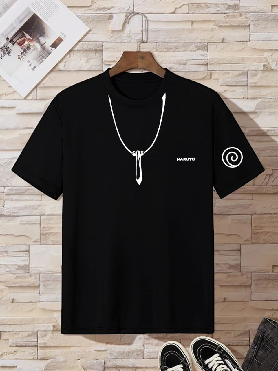 This half sleeve t-shirt is a wardrobe essential that will quickly become a favorite one. On the Back Panel the Nindo is One Keeps him Going onward to Become the Greatest Hokage, a Ninja Legend Uzumaki Naruto. In the Front Panel the Unforgettable gift from Lady Tsunade. She gave the Necklace when He Mastered the Jutsu. In the sleeve the Forgotten Warriors of Uzumaki clan emblem. It is a memorable gift from her. It is a classic timeless versatile piece for Your Wardrobe.